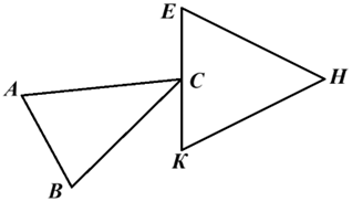 Задание 4. Робот движется по ровной горизонтальной поверхности и наносит на неё изображение (См. Рисунок) при помощи кисти, закреплённой посередине между колёс. Изображение составлено из двух треугольников. Точки Е, С, К лежат на одной прямой, АС=ВС, ЕК=ЕН=КН, ∠АСВ = 40°, ∠ВСК=15°. Определите минимальный суммарный угол поворота робота при проезде по всей траектории. Ответ дайте в градусах. Все повороты робот должен совершать на месте. Робот не может ехать назад.